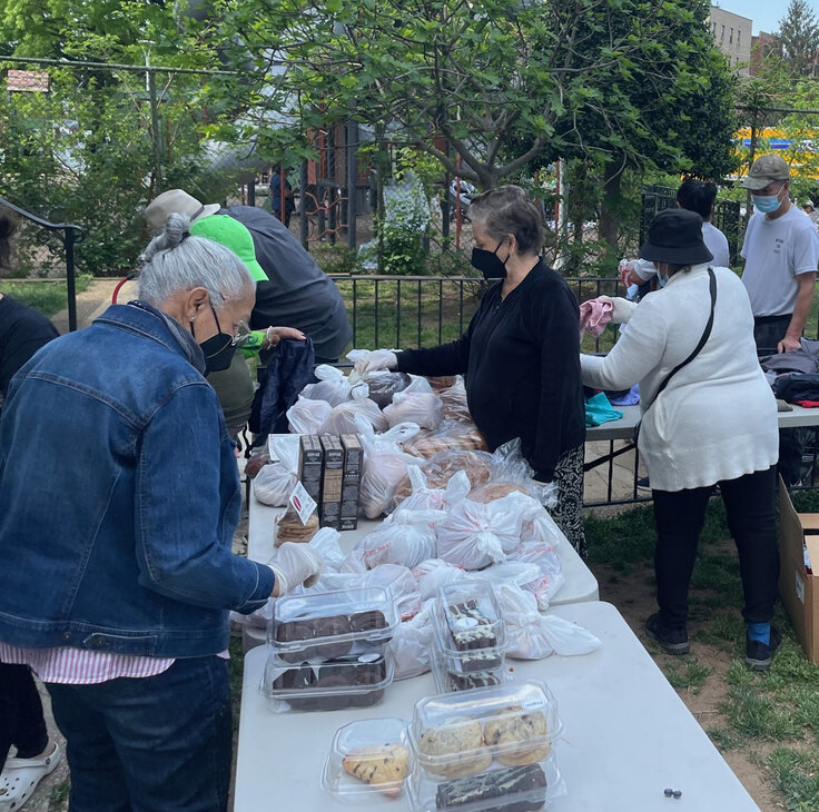 Decenas de vecinos del barrio de Mt. Pleasant, en su mayoría personas de la tercera edad, forman fila para recibir de forma gratuita alimentos en la puerta de la parroquia Sagrado Corazón de Washington. Foto/MV